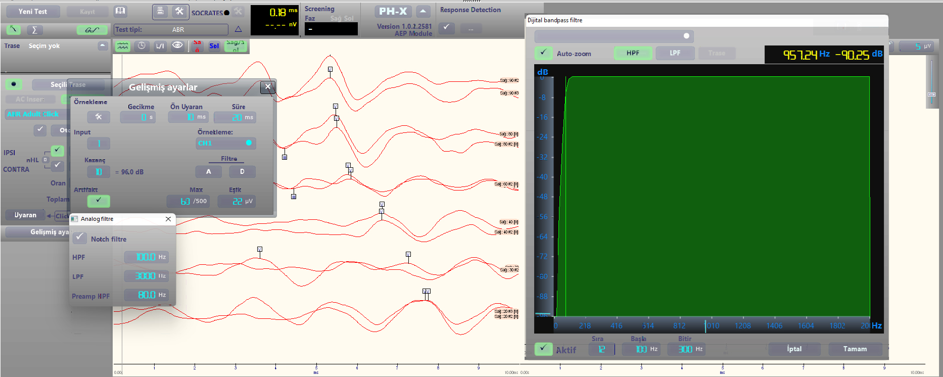 • Sağ ve sol ipsilateral uyarım, kontralateral uyarım, maskeleme